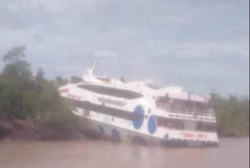 MESIN RUSAK, MV Dumai Line 9 Tabrak Pantai di Perairan Sei Tohor Meranti