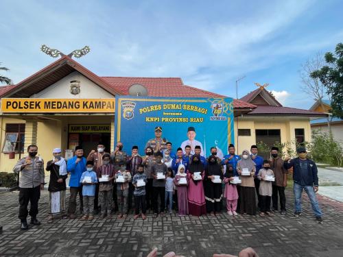 Berbagi Berkah DPD KNPI Riau Bersama Polres Dumai Kunjungi Medang Kampai Bagikan 200 Paket Bantuan