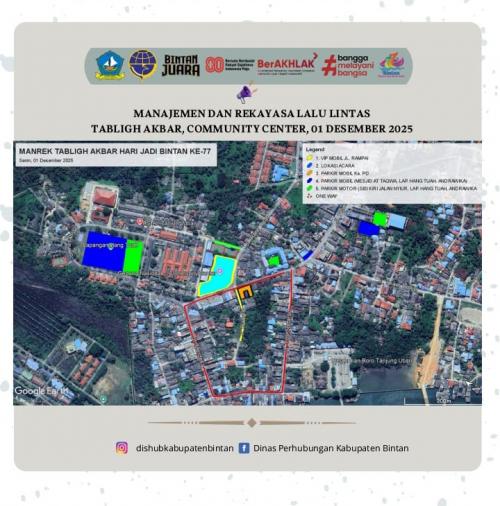 Daerah | Sabtu 29-11-2025, 20:53 WIB Rekayasa Lalu Lintas dan Kantong Parkir Puncak Peringatan Hari Jadi Ke-77 Kabupaten Bintan