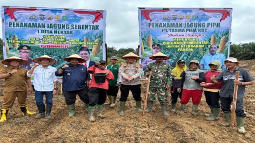Sukseskan Program Presiden Prabowo, PT Tasmapuja dan Polres Inhu Tanam Jagung Pipil