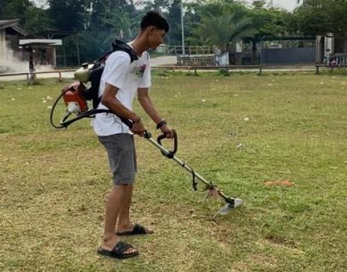 Mahasiswa KKN mempersiapkan Gotong-Royong di Lapangan Dusun Siabang Bersama Pemuda Setempat
