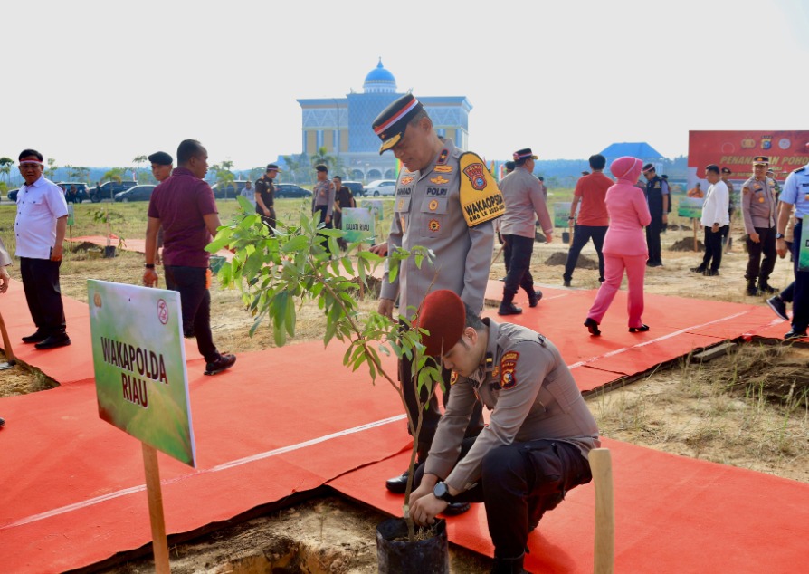 Usai memberikan sambutan, Wakapolda Riau bersama para tamu undangan dan pengurus Bhayangkari Cabang Daerah Riau melakukan penanaman pohon yang telah disediakan, menandai dimulainya rangkaian kegiatan penanaman pohon serentak tersebut.