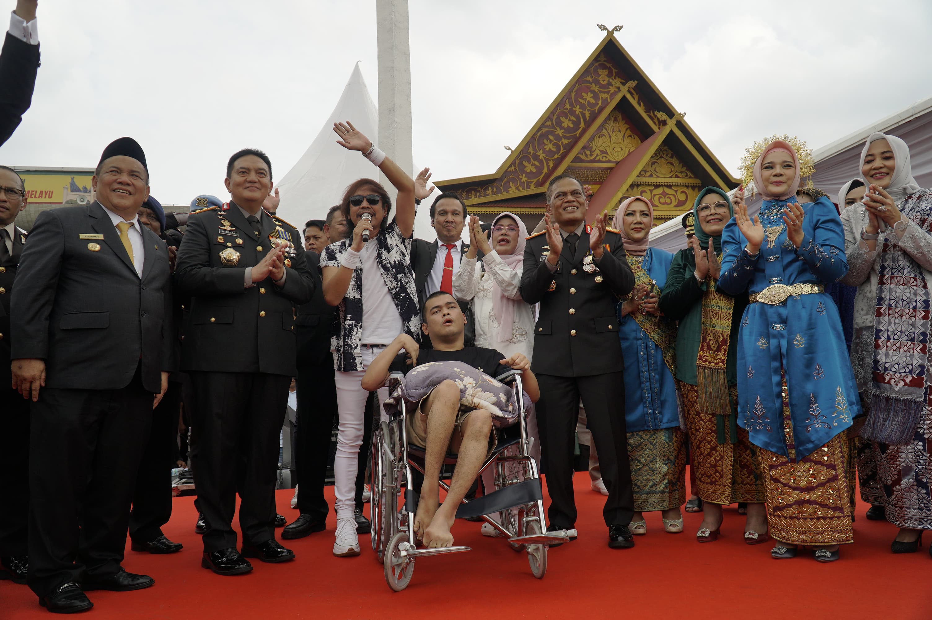 Didorong oleh Wakapolda Riau Brigjen K Rahmadi, Ogi bersama ibunya naik panggung bersama Kapolda Riau Irjen M Iqbal. Salah satu momen haru terjadi ketika Irjen M Iqbal mencium kening Ogy.