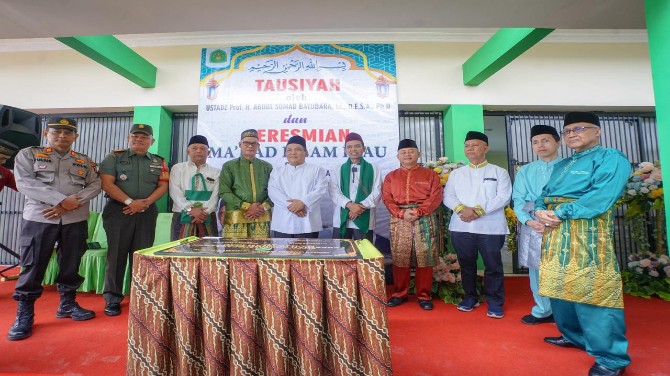 KupasKasus.com, Pekanbaru - Penjabat (Pj) Gubernur Riau (Gubri) SF Hariyanto meresmikan pembukaan Ma'had Islam Riau yang berada di bawah naungan Yayasan Lembaga Pendidikan Islam (YLPI) Riau. Kegiatan peresmian itu berlangsung di Pondok Pesantren Ma’had Islam Riau, Jalan Lintas Timur, Sabtu (10/8/2024) pagi.