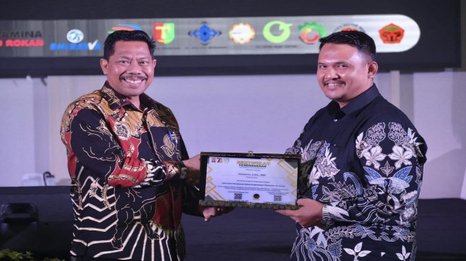 Penghargaan tersebut diterima langsung oleh Bupati Bengkalis diwakili Staf Ahli Bupati Bidang Pemerintahan Hukum dan Politik Ed Efendi yang diserahkan oleh Dr. Husni Mubarak selaku Ketua Dewan Juri.