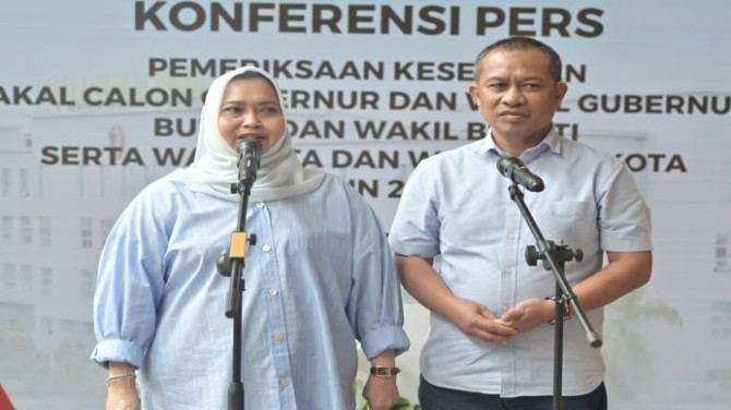 KupasKasus.com, Pekanbaru - Pasangan Calon Bupati Bengkalis dan Wakil Bupati Bengkalis Kasmarni Bersama Bagus Santoso, ikuti Medical Check Up hari kedua di RSUD Arifin Achmad, Pekanbaru, Senin (2/9/2024).