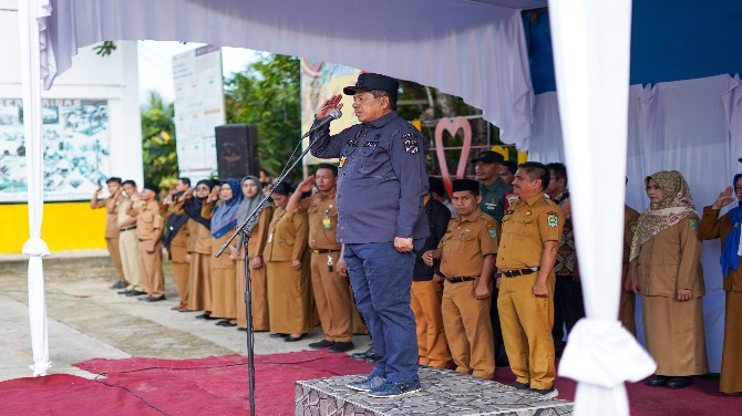 Diawal sambutannya, Bupati Siak Alfedri terlebih dahulu mengungkapkan rasa senangnya karena bisa bersilaturahmi dan menghadiri upacara bendera bersama siswa-siswi SMKN 1 dan SMAN 1 Minas.