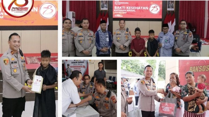KupasKasus.com, Siak - Bakti sosial (baksos) dan bantuan sosial (bansos) juga bakti kesehatan dilakukan serentak di seluruh Indonesia dalam rangka HUT ke-78 Bhayangkara.