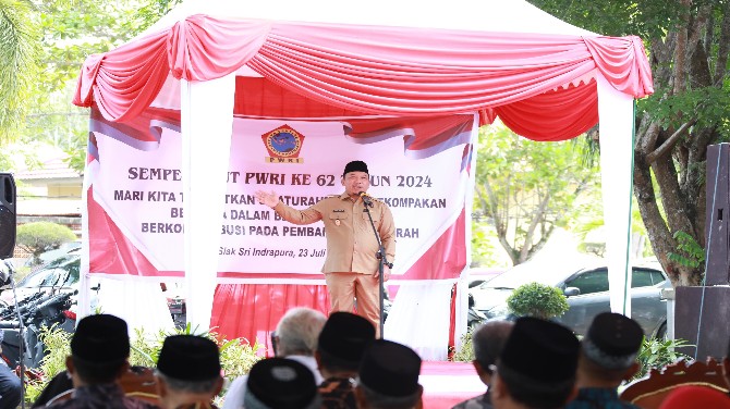 Wakil Bupati Siak Husni Merza yang juga Pembina Utama PWRI Kabupaten Siak, terlebih dahulu mengucapkan selamat hari jadi PWRI ke - 62 tahun 2024 di seluruh Indonesia, khususnya PWRI Kabupaten Siak.