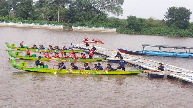 Team Dayung dari Pelabuhan Lasdap hingga Finish di Tepian Bandar Sungai Jantan dengan Jarak Tempuh 500m.