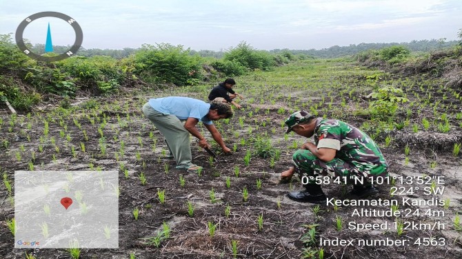 KupasKasus.com, Siak - Dalam upaya mendukung ketahanan pangan dan memastikan hasil panen padi gogo yang optimal, Babinsa Koramil 05/Pwk Kandis, Serka Budi Santoso dan Koptu I Ketut Budiasa, bergotong royong bersama Kelompok Tani Sada Nioga. Kegiatan ini berfokus pada perawatan intensif padi gogo.