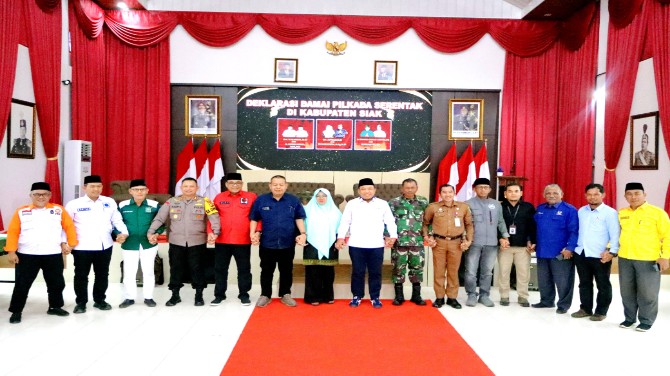 Acara yang berlangsung di Gedung Endra Dharma Laksana Polres Siak ini menghadirkan seluruh pihak terkait mulai dari aparat keamanan, penyelenggara Pilkada, hingga para calon Bupati dan wakil bupati.