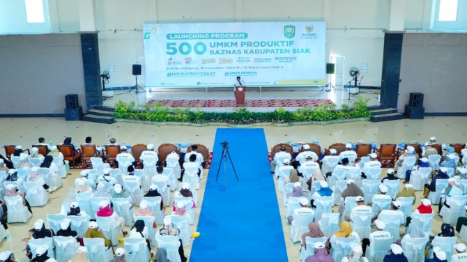 KupasKasus.com, Siak - Badan Amil Zakat Nasional (BAZNAS) Kabupaten Siak melaunching program UMKM Produktif sebanyak 500 penerima manfaat di gedung kesenian Kabupaten Siak, Rabu (18/09/2024).