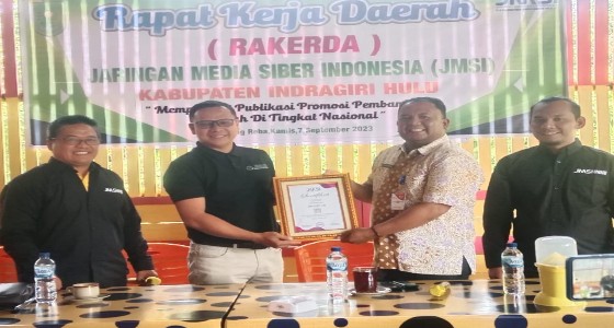 Dalam kesempatan itu Ketua Bidang Information and Communication Technology (ICT) JMSI Pusat, Zulpen Zuhri menyerahkan sertifikat QR Barcode Scanner JMSI kepada perusahaan media siber maenstrim yang merupakan anggota JMSI Inhu.
