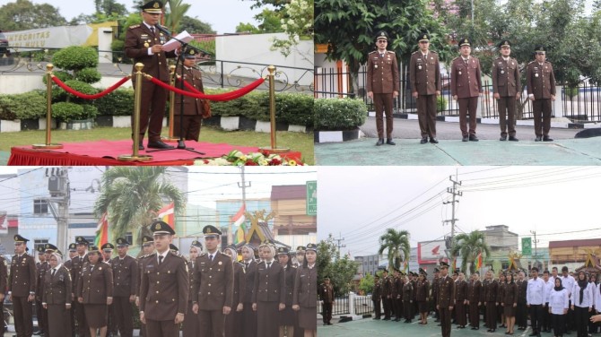 KupasKasus.com, Rengat - Kejaksaan Negeri Indragiri Hulu (Kejari Inhu) melaksanakan Upacara Peringatan Hari Lahir Kejaksaan RI ke-79 tahun 2024 yang jatuh pada tanggal 2 September, bertempat di halaman Kejari Inhu, Senin (2/9/2024) pagi.
