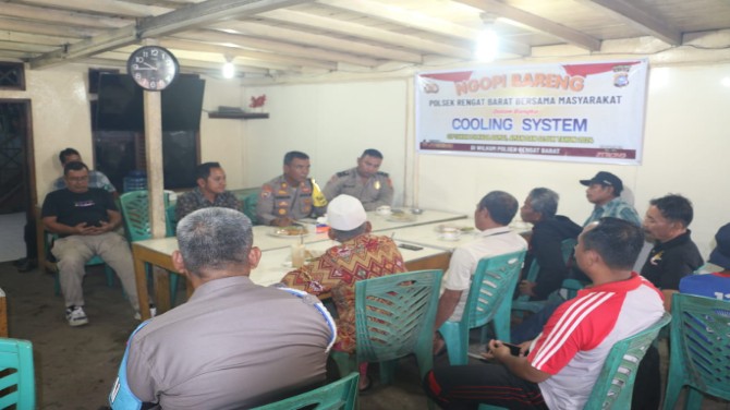 KupasKasus.com, Rengat - Dalam upaya menjaga ketenteraman dan keamanan di Desa Pekanheran, Polsek Rengat Barat mengadakan acara "Ngopi Bareng Cooling System" dengan Perangkat Desa, Tokoh Masyarakat (Tomas) dan Tokoh Pemuda (Toda).