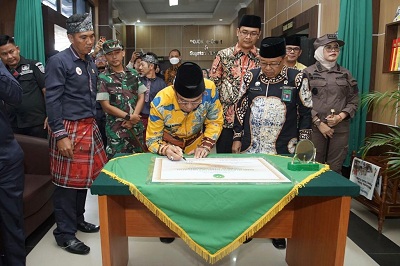Tembilahan - Bupati Indragiri Hilir H. M. Wardan bersama Ketua Pengadilan Tinggi Agama Pekanbaru DR. H. Harun. S, SH, MH meresmikan Ruang Pelayanan Terpadu Satu Pintu (RPTSP) PA Tembilahan sekaligus menandatangani MoU antara Pemda dengan PA. Tembilahan tentang pelayanan hukum bagi masyarakat Tembilahan serta melakukan launching inovasi aplikasi e-Sapat (Sarana Pelayanan Cepat Terintegrasi) dan meresmikan PTSP. PA Tembilahan, kamis 08/09/2022.