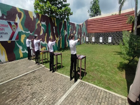 Latihan menembak menggunakan jenis senpi laras pendek, sebelum pelaksanaan kegiatan menembak terlebih dahulu dilaksanakan apel guna pengecekan personel dan diberikan arahan dan petunjuk dari instruktur menembak.