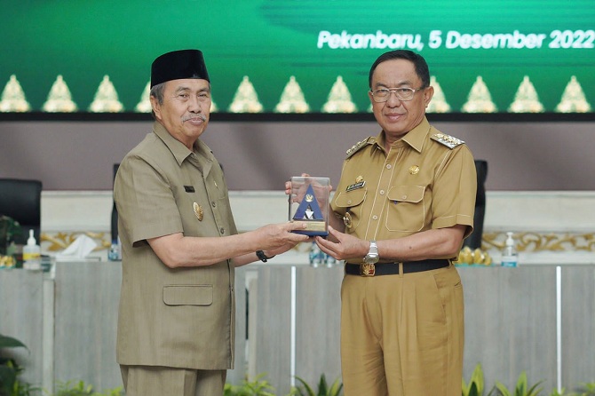 Penghargaan diterima Bupati HM WARDAN bersamaan dengan kegiatan penyerahan Daftar Isian Penyelenggaraan Anggaran (DIPA) dan buku alokasi Transfer ke Daerah (TKD) tahun 2023 yang diselenggarakan di Gedung Serindit, Provinsi Riau.