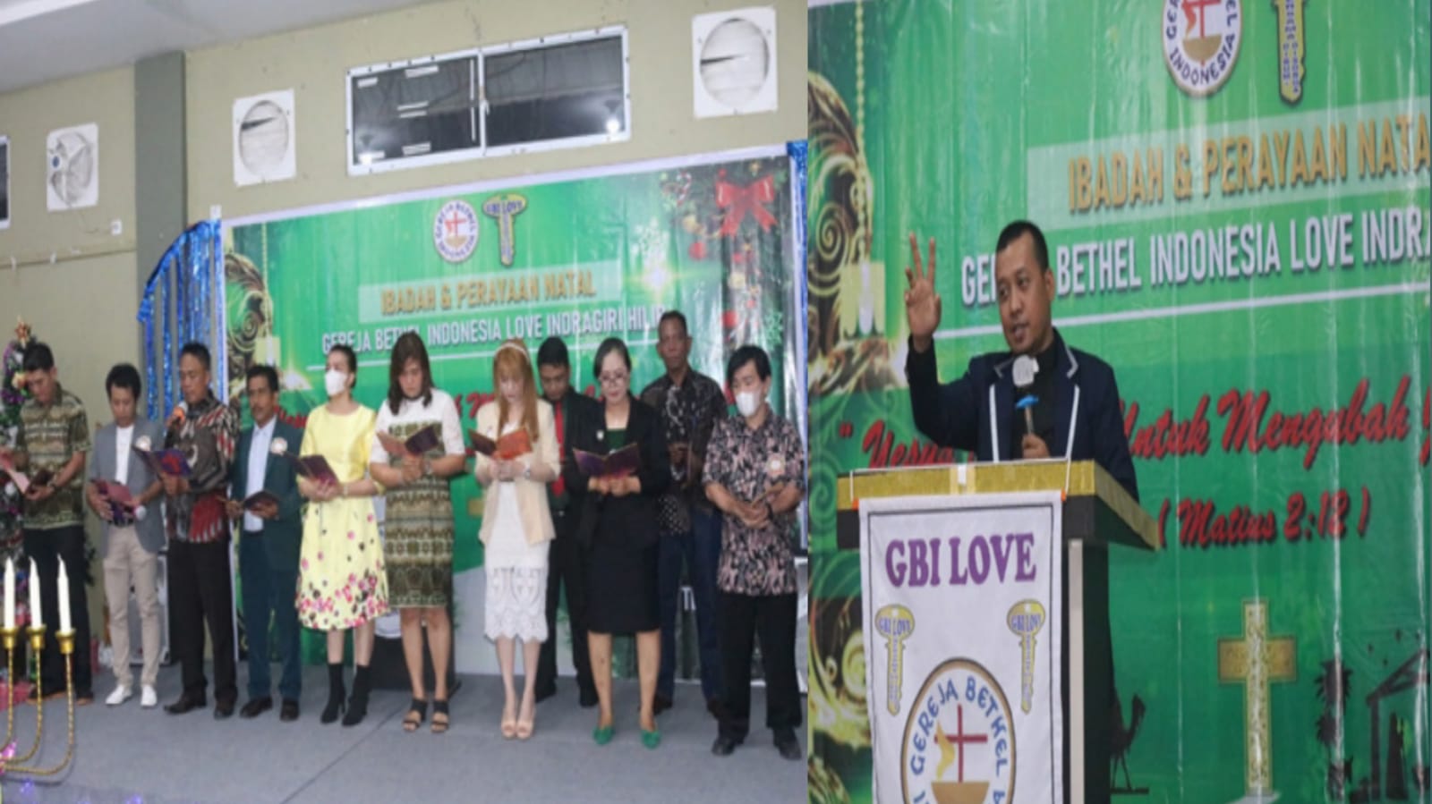 Seperti yang dilaksanakan Gereja Bethel Indonesia Love Indragiri Hilir Tembilahan merayakan hari kelahiran Yesus Kristus yang dilaksanakan di Hotel Top 5 Tembilahan Jumat (16/12/2022) malam dengan thema “Yesus datang mengubah Jalan Hidupku yang diambil dari Kitab Injil Mat 2.12.