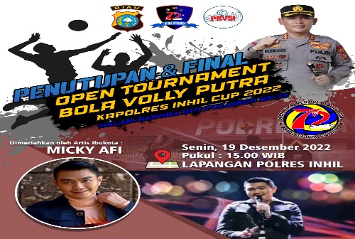 Kupaskasus.com, Inhil - Dibabak final Turnament Volly Ball Putra Kapolres Inhil Cup 2022 dalam rangka HUT Polairud ke 72 hari ini (Senin, 19-12-2022) bertanding Tim Bola Volly Putra dari Polsek Reteh dengan Tim Arnavat Polairud. Acara penutupan dihibur oleh artis Ibukota MICKY AFI.