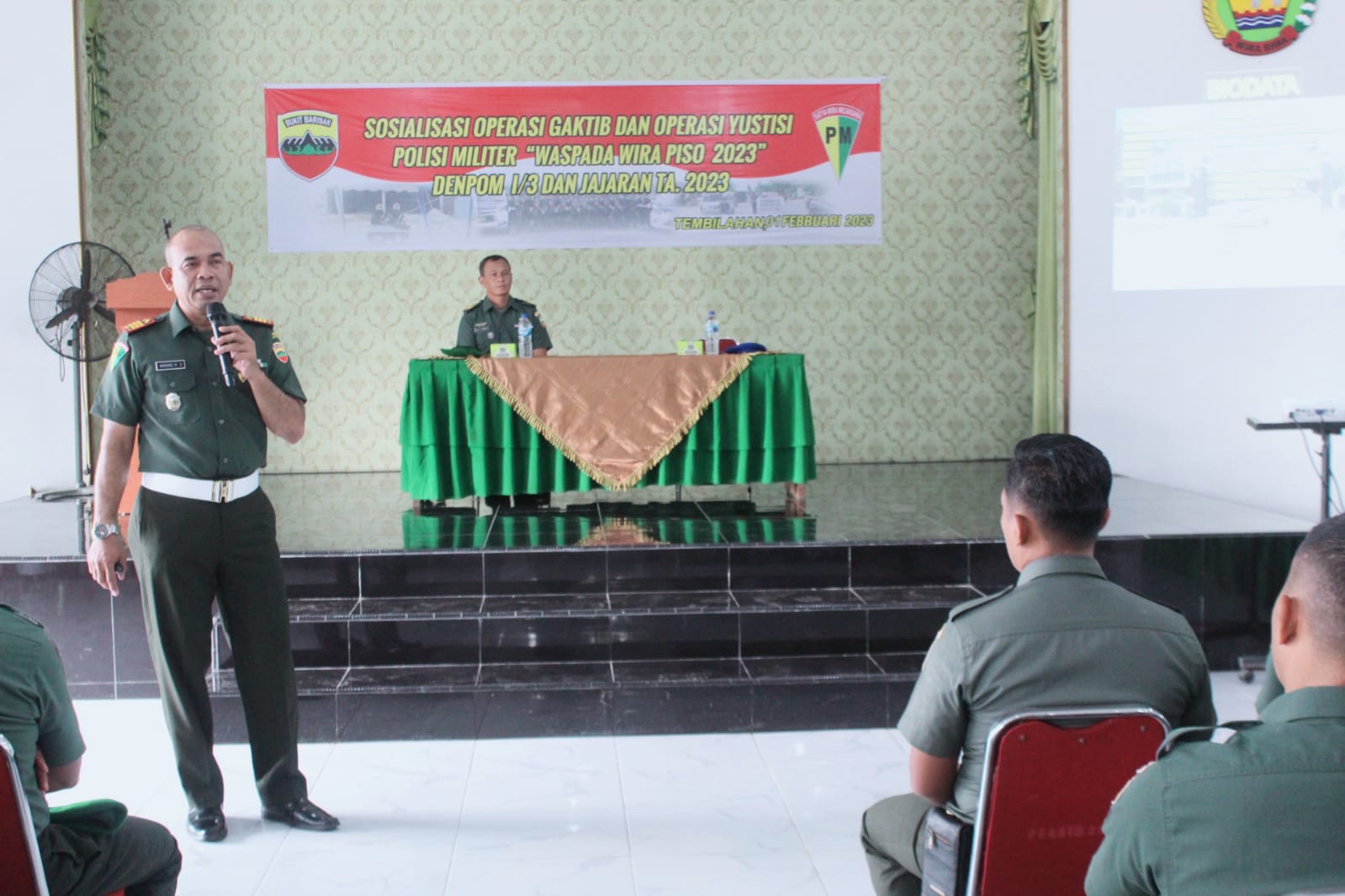 Kupaskasus.com, Inhil - Guna meningkatkan kedisiplinan prajurit dan untuk menegakkan ketertiban Subdenpom Tembilahan mengelar sosialisasi operasi Gaktib dan operasi yustisi Polisi Militer Tahun 2023 bertempat di Aula Makodim 0324/Inhil Jl.A Yani Kecamatan Tembilahan Hulu, Rabu(01/02/2023).
