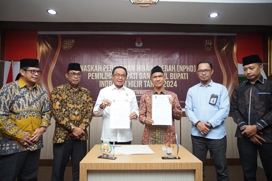 Bupati Bersama KPU Inhil Tandatangani Naskah Perjanjian Hibah Daerah Pendanaan Pilkada 2024