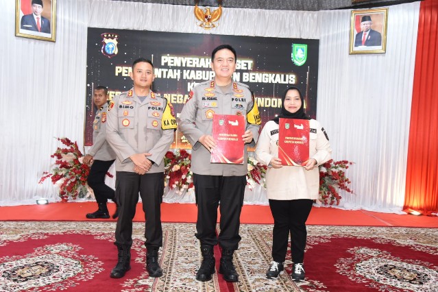 Penyerahan hibah barang milik daerah tersebut ditandai dengan penyerahan berita acara hibah tanah, gedung, bangunan dan peralatan kantor yang telah ditandatangani oleh Bupati Bengkalis, Kapolres Bengkalis dan diketahui oleh Kapolda Riau.