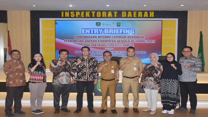 KupasKasus.com, Bengkalis - Bupati Kasmarni diwakili Sekretaris Daerah dr. Ersan Saputra TH, menghadiri Entry Briefing Pemeriksaan Interim (Pemeriksaan Pendahuluan) atas Laporan Keuangan Pemerintah Daerah Kabupaten Bengkalis tahun anggaran 2024 oleh BPK RI Perwakilan Riau, Senin 24 Februari 2025, di lantai II Kantor Inspektorat Bengkalis.