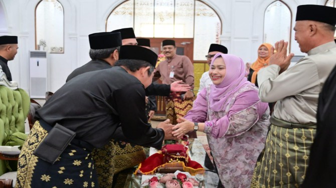 KupasKasus.com, Bengkalis - Bupati Bengkalis Kasmarni menyambut baik silaturahmi ketua beserta jajaran pengurus Lembaga Adat Melayu Riau (LAMR) Bengkalis, Rabu 12 Maret 2025, di Wisma Daerah Bengkalis.