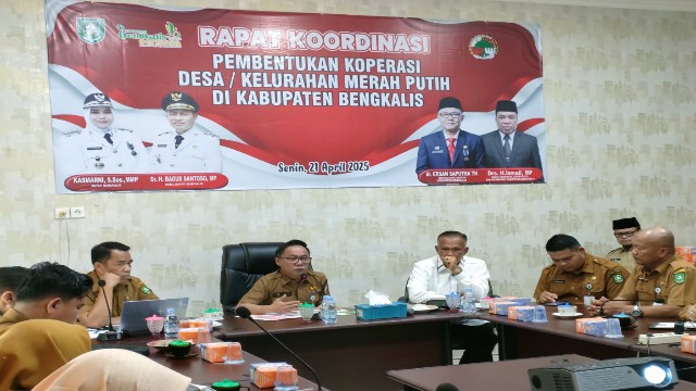 KupasKasus.com, Bengkalis - Bupati Bengkalis Kasmarni diwakili Sekretaris Daerah Kabupaten Bengkalis dr. Ersan Saputra membuka rapat koordinasi pembentukan Koperasi Desa/Kelurahan Merah Putih di Kabupaten Bengkalis, Senin, 21 April 2025 di ruang rapat kantor Dinas Koperasi dan UKM Jalan Pertanian Bengkalis.