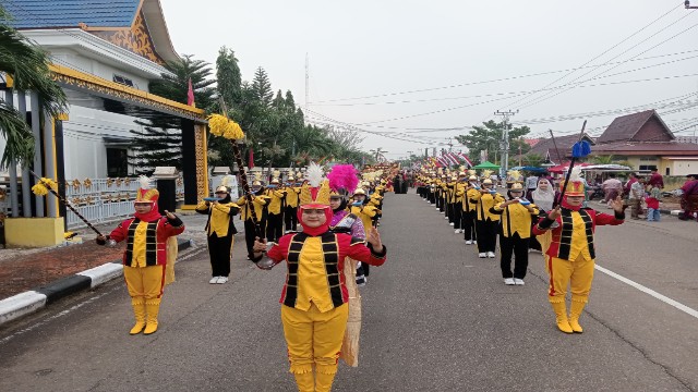 Drum Band Gelora Nada SMPN 1 Teluk Kuantan Tampil Memukau Iringi Pembukaan MTQ Provinsi Ke-43 di