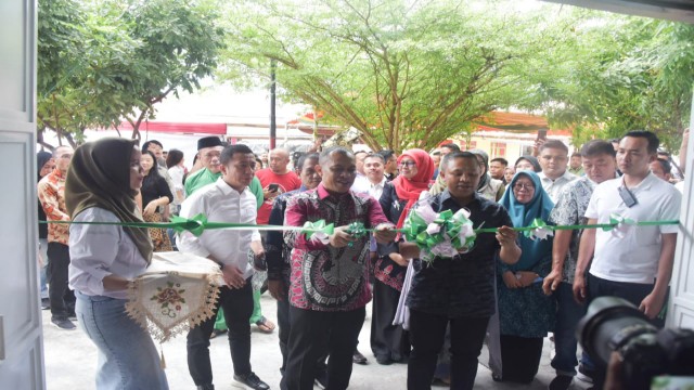 Peresmian pangan murah dan kios pangan ini, ditandai dengan pemotongan pita oleh Gubri bersama Wabup Bengkalis.