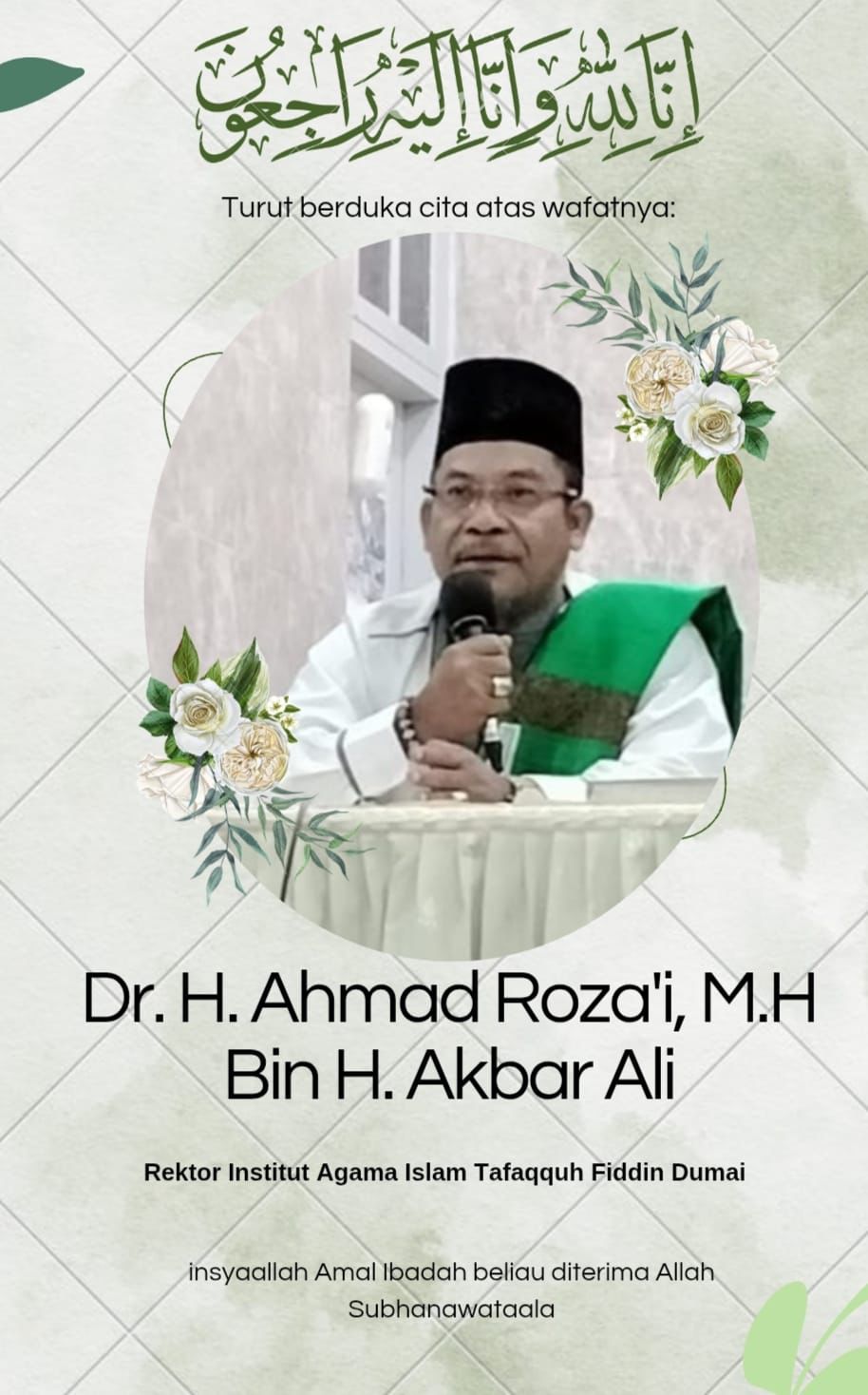 Dr. H. Ahmad Rozaii Akbar menghembuskan nafas terakhir pada pukul 5.45 pagi di RSUD Dumai.
