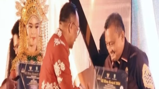Penghargaan itu diserahkan secara langsung oleh Penjabat (Pj) Gubernur Riau, Dr Rahman Hadi MSi dan diterima Pjs Bupati Kuansing, drg Sri Sadono Mulyanto MHan diwakili oleh Kepala Diskominfoss Kuansing, Hendra Roza SSi di Ballroom Hotel Grand Central, Pekanbaru, Selasa yang lalu (12/10) malam.