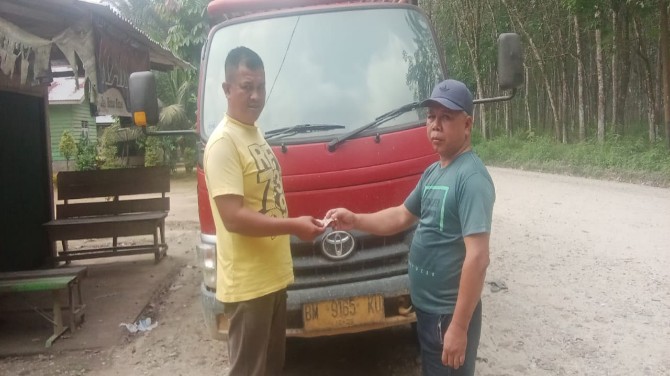 KupasKasus.com, Kuansing - Pegi ketua pengelola parkir Desa Jake kecamatan kuantan tengah kabupaten kuantan Singingi pagi Selasa (4/2 2025)sesuai dari janjinya pada pemberitaan sebelumnya akan mengembalikan uang karcis yang terlanjur di punggut oleh beberapa anggotanya kepada sejumlah truk yang melewati jalan perusahaan PT UKM desa Jake, hari ini sesuai janji tersebut pegi beserta anggotanya kembali turun ke lokasi dan mengembalikan uang kepada supir truk sesuai dengan harga karcis.