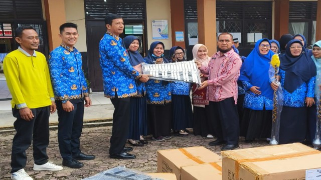 KupasKasus.com, Teluk Kuantan – Guna mendukung sarana dan prasarana Sekolah SMPN 1 Teluk Kuantan, Komite Sekolah menyerahkan bantuan alat drumband kepada SMPN 1 Teluk Kuantan.