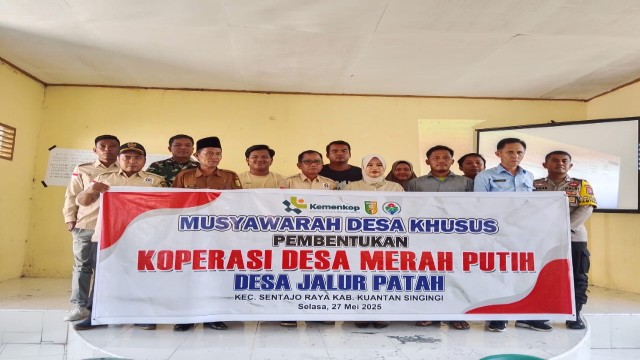 KupasKasus.com, Kuansing - Pemerintah Desa jalur Patah Kecamatan Sentajo Raya Kabupaten Kuantan Singingi menggelar Musyawarah Desa Khusus (Musdessus), dalam rangka pembentukan Koperasi Merah Putih di gedung serba Guna Desa Jalur Patah, Rabu (28/5-2025).