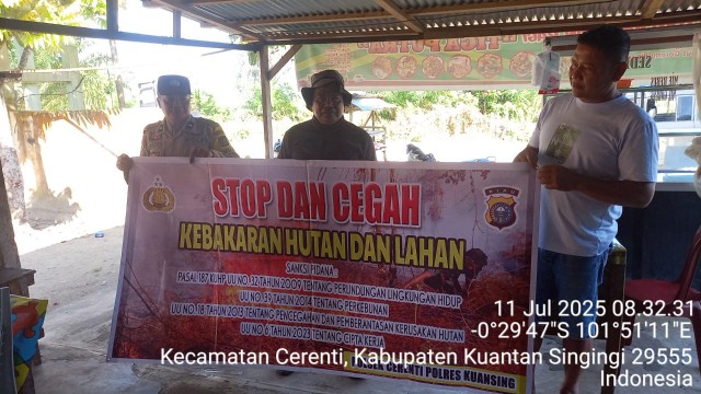 Kapolres Kuantan Singingi, AKBP Angga F. Herlambang, S.I.K., S.H., melalui Kapolsek Cerenti AKP Benny Afriandi Siregar, S.H., M.H., menyampaikan bahwa upaya pencegahan KARHUTLA adalah bagian dari tanggung jawab bersama dan akan terus menjadi perhatian utama jajaran Polres dan Polsek di wilayah hukum masing-masing.