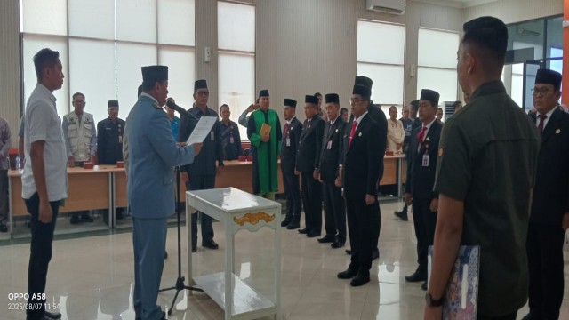 KupasKasus.com, Kuansing - Bupati Kuansing Dr H Suhardiman Amby, melantik dan mengambil sumpah jabatan Sekda Kabupaten Kuansing yang baru bersama delapan pejabat eselon II lainnya di lingkungan Pemkab Kuansing kamis (7/8 2025) di ruang rapat multimedia kantor Bupati.