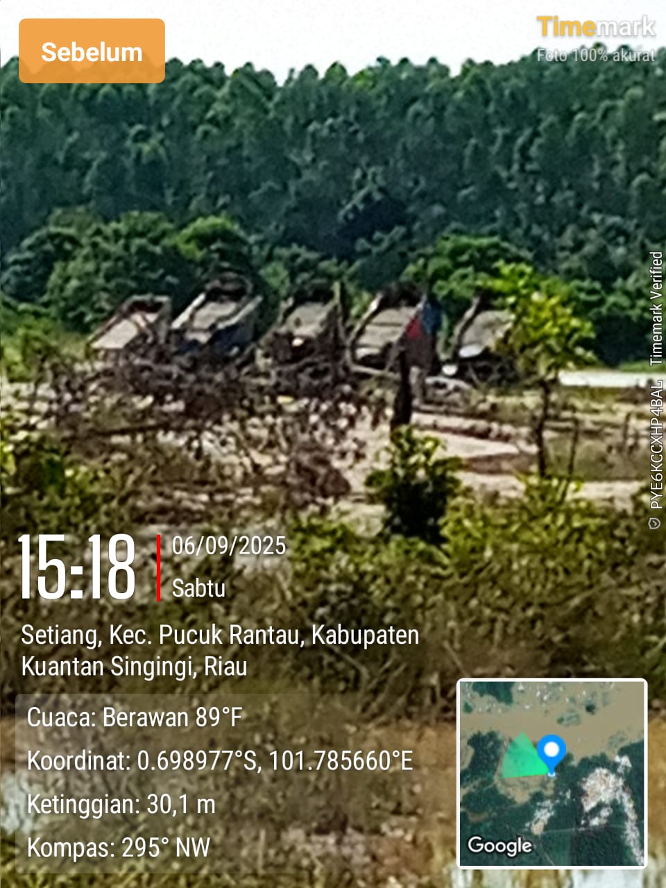 Dari bekal Informasi tersebut awak media langsung mengecek Kelokasi yang di sebutkan oleh narasumber yang ingin di lindungi Identitasnya, pada hari Sabtu (6/9/2025) sampai di lokasi ditemukan memang benar dan terlihat sebanyak 14 rakit yang berjejer di sepanjang Aliran Sungai Batang Peranap, yang sudah mulai di rusak oleh pelaku yang tidak bertanggungjawab oleh Penambang Emas ilegal bahkan Air sungai itu sudah berubah warna menjadi keruh bercampur lumpur dan sepertinya aktivitas PETI ini sudah berlangsung lama dan tidak pernah terpantau ataupun penertiban oleh APH atau sengaja di biarkan dan tidak tersentuh hukum sama sekali