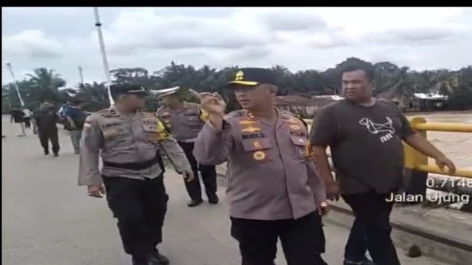 Kapolres Rokan Hulu Tinjau Jembatan Ujung Batu yang Nyaris Putus, Imbau Warga Waspadai Bencana Alam