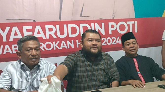 Konferensi pers yang digelar di Kantor Koalisi pada Rabu (27/11/2024) malam, dihadiri oleh pasangan calon Anton-Syafaruddin (nomor urut 3), Ketua Koalisi Novli Wanda Ade Putra, serta tim pemenangan. Wanda menyampaikan bahwa hasil perolehan suara ini berdasarkan formulir C yang diterima dari saksi-saksi yang ditempatkan di 16 kecamatan di Rokan Hulu.