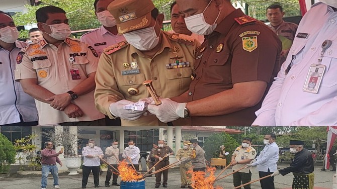 Kejari Rokan Hulu Musnahkan Barang Bukti Narkoba, Senjata Ilegal, dan Barang Bukti Lainnya