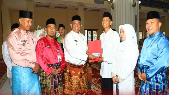 Suasana di Masjid Agung pun dipenuhi kebahagiaan doa bersama, salam, dan ucapan selamat mengiringi setiap pasangan yang resmi dinyatakan suami-istri. Para tamu undangan dan keluarga tak kuasa menahan haru ketika pasangan menerima buku nikah dan paket bantuan dari panitia.