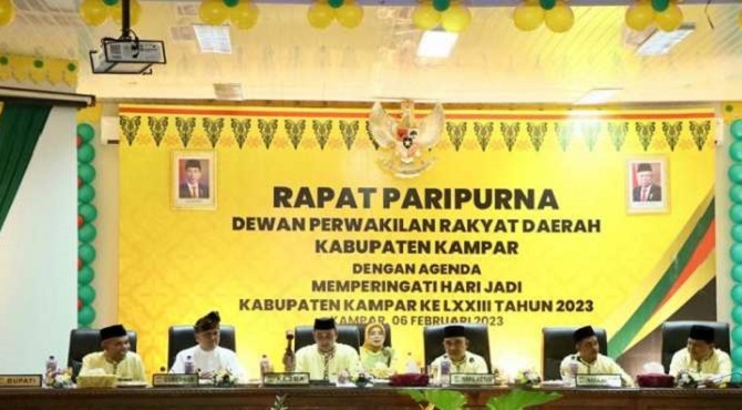 Ketua DPRD Kabupaten Kampar M Faisal dalam amanahnya ketika memimpin rapat paripurna istimewa menyampaikan, peringatan Hari Jadi Kabupaten Kampar ini mengusung tema “Dengan Hari Jadi ke-73 Kabupaten Kampar Tahun 2023 Kita Wujudkan Ekosistem Pembangunan yang Berkeadilanâ€.