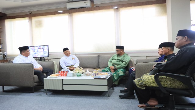 KupasKasus.com, Bintan Bintan - Bupati Bintan menerima kunjungan silaturahmi dari Lembaga Adat Melayu (LAM) Kabupaten Bintan dan LAM Provinsi Kepulauan Riau, Jumat (23/05) di Ruang Kepala Bapperida Bintan. Didampingi Sekretaris Daerah Kabupaten Bintan Ronny Kartika, Bupati Roby membahas sejumlah isu strategis seperti komitmen pelestarian dan pengembangan budaya Melayu.