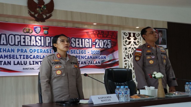 KupasKasus.com, Bintan Kepri – Kepolisian Resor Bintan menggelar Latihan Pra Operasi Seligi Tahun 2025 yang dilaksanakan di Ruang Aula Sar Polres Bintan pada Jumat (11/7/2025).