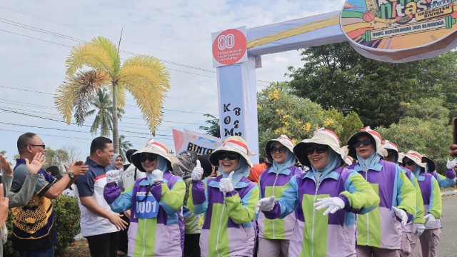 KupasKasus.com, Bintan - Mengenakan seragam penuh warna yang cukup menarik perhatian, Tim Gerak Jalan TP PKK Bintan turut andil dalam kemeriahan Gerak Jalan Tri Lomba Juang 2025. Menjadi tim pertama yang dilepas dalam kelas 8 Km kategori putri, perempuan-perempuan hebat PKK Bintan tampil dengan semangat yang sangat kuat hingga ke garis finish.