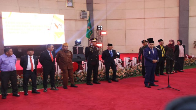 Tampak hadir pada acara pengukuhan paskibra, mewakili Forkopimda, Sekretaris Daerah, para Asisten, Staf Ahli, pimpinan OPD dan kepala bagian. (Zaki)